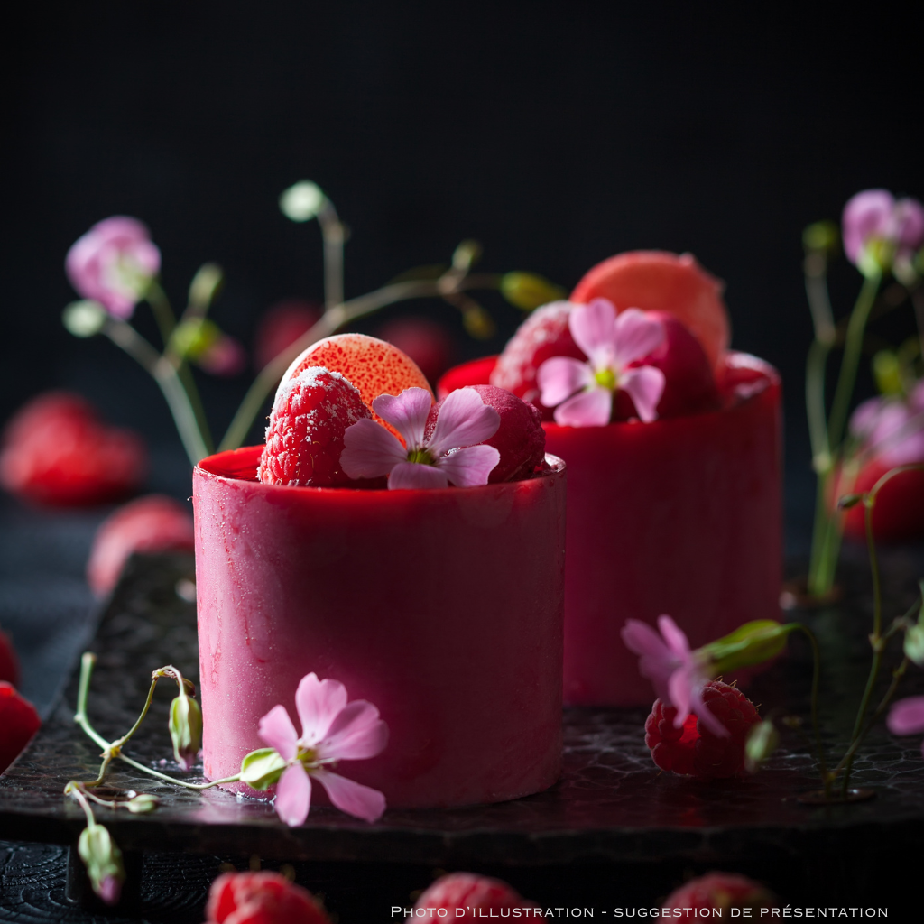 Dessert classique et raffiné de la pâtisserie française, le Bavarois associe une crème anglaise légère parfumée (vanille, fruits, chocolat…) à une crème fouettée pour une texture aérienne et fondante. Il peut être monté en entremets, en verrine, ou sur une base biscuit pour une finition élégante et gourmande.