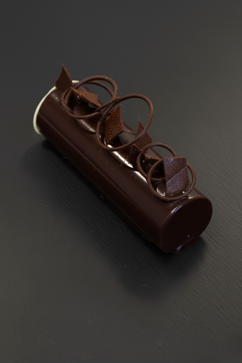 Mousse chocolat noir, mousse chocolat lait, mousse chocolat noir, génoise nature.