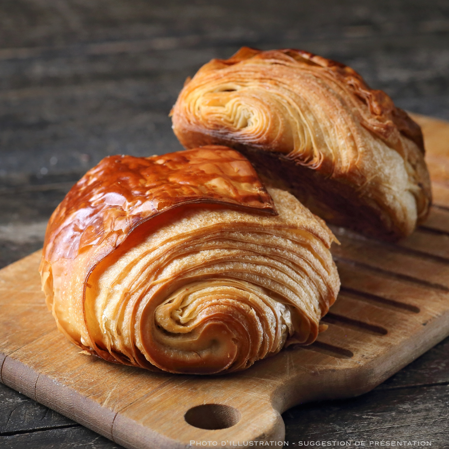Viennoiserie feuilletée à base de pâte levée au beurre, renfermant deux barres de chocolat noir fondant. Doré et croustillant à l’extérieur, moelleux à l’intérieur, le pain au chocolat est un incontournable du petit-déjeuner français.