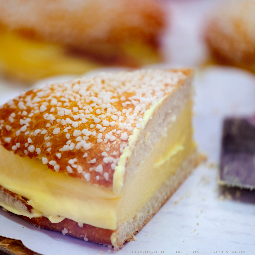 Brioche moelleuse et fondante, garnie d’une crème onctueuse parfumée à la vanille et à la fleur d’oranger. Cette pâtisserie emblématique du sud allie douceur, légèreté et gourmandise, parfaite pour toutes les occasions.